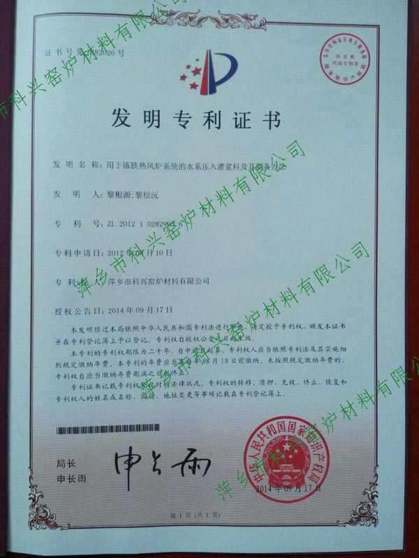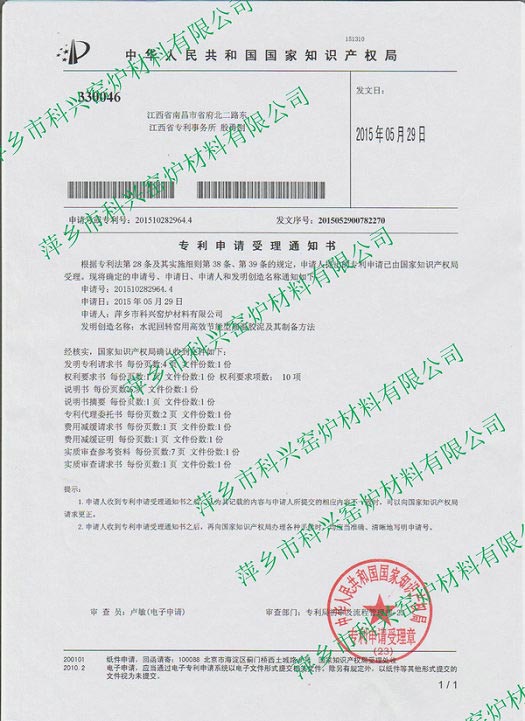 高温胶泥发明专利受理通知书