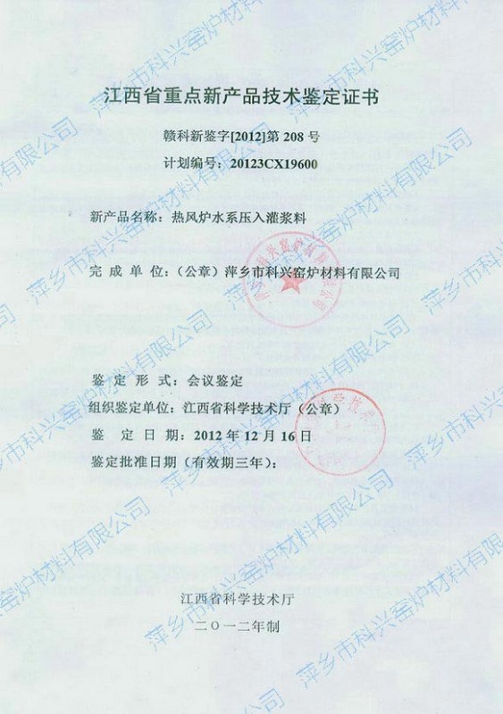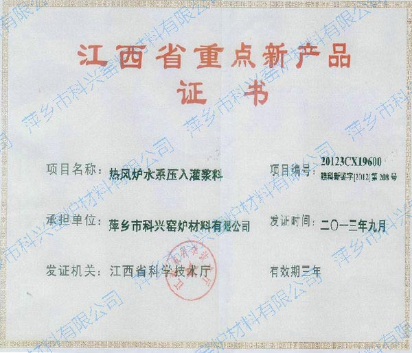 江西省重点新产品鉴定证书